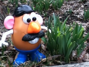 It was in the 60s today so I went out to play. The daffodils are starting to grow and I climbed a tree.