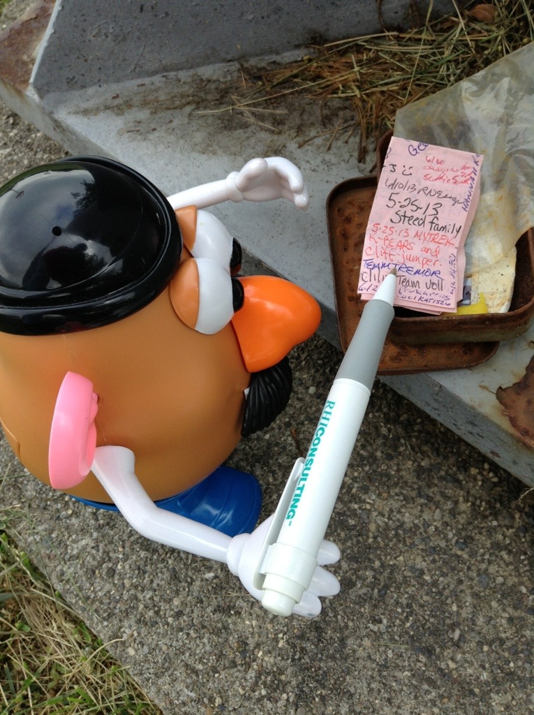 I found the first one as we stopped for breakfast. Sometimes they are in little boxes under stuff so I saw it right away :0)