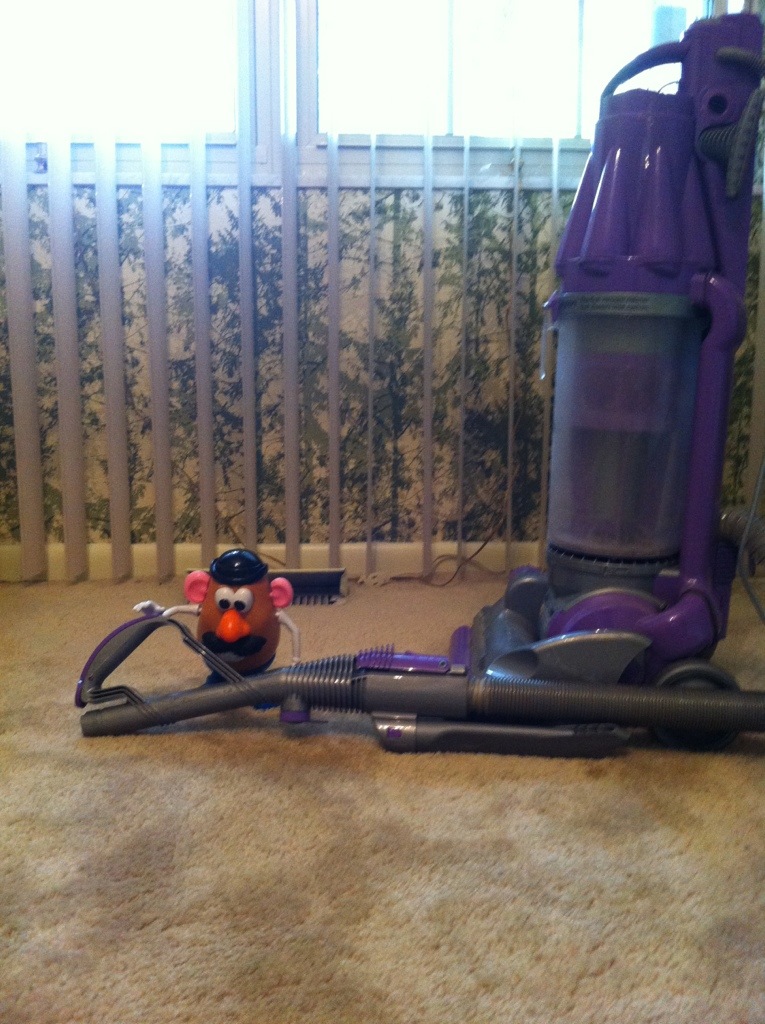I had no idea they made such a fun toy. Who knew you could drop things on the floor grab this thing they call a Dyson and zoooom. It sucks it up!