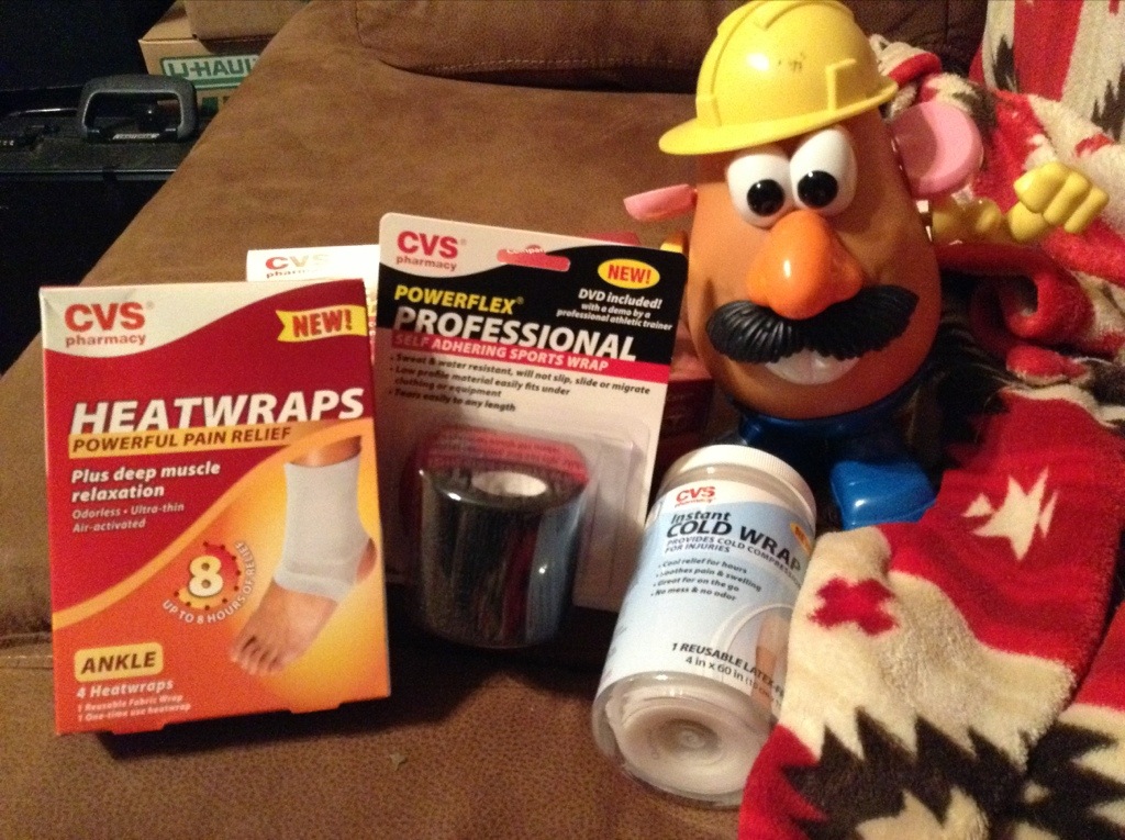 So she should be good in the morning. Hot shower, ibuprofen, ice and a movie to watch before bed.