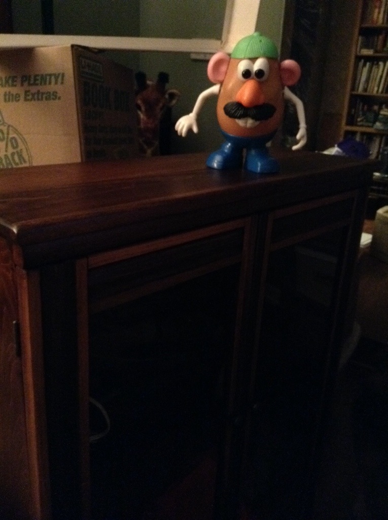 Oct 2,2013 we got a cabinet Posted on October 2, 2013 by ohiophotogrl Standard This weekend we had the guys help bring us this great cabinet that my pal Deny stained for us. It looks great. Do you see who photo bombed me? Ohiophotogrls pet Giraffe! That cracks me up. Wonder what were gonna do tomorrow? Share this: Click to share on X (Opens in new window) X Click to share on Facebook (Opens in new window) Facebook Like Loading... Related