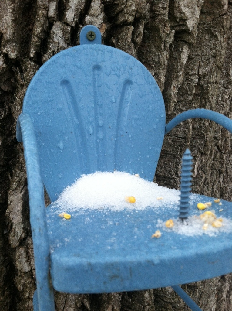 Here is a pic I took this morning before it really started snowing. There was ice on everything.