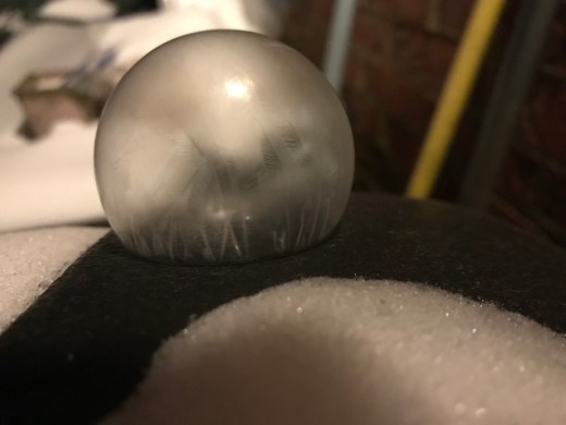 Kinda looks like a doggie if you look in the bubble. We got frozen lines in there but no real cool patterns. The wind started to pick up which causes the bubbles to do this….