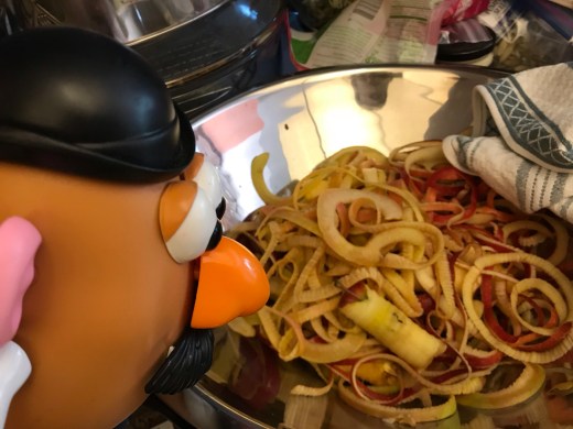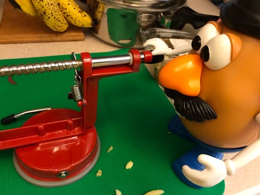 With the Apple peeler in the top photo it cores the Apple at the same time it’s peeling so it makes fast work out of getting the apples ready. Then we throw them in the pan with the water and lemon juice….