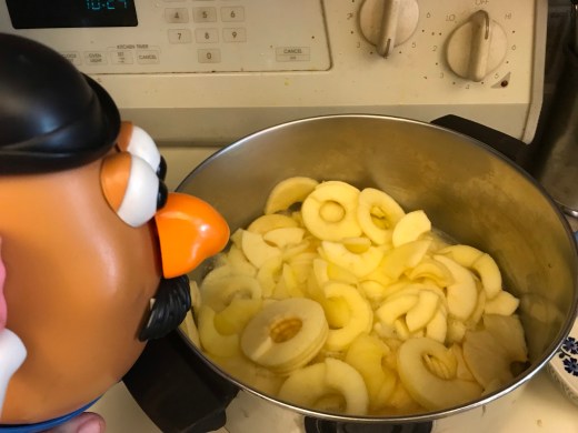 But a lid on it and wait for it to get all tender so we can squish it all up for our applesauce.