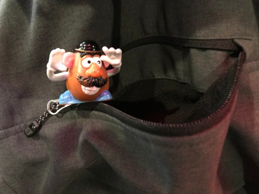 Seems like she is having dinner out. I heard her say something about a show. It’s dark in this pocket. I’m gonna have to sneak out of here and see where we are going next :0)